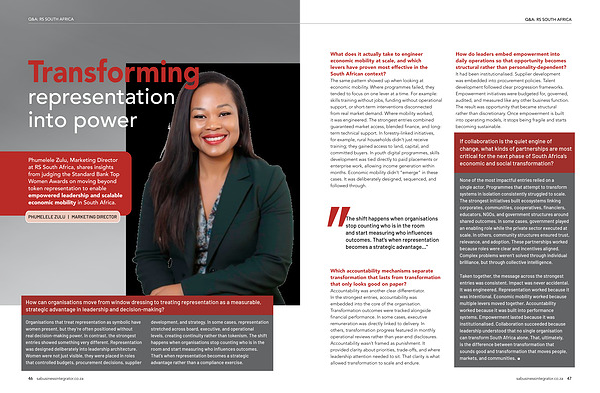 Phumelele Zulu, Marketing Director at RS South Africa, shares insights from judging the Standard Bank Top Women Awards on moving beyond token representation to enable empowered leadership and scalable economic mobility in South Africa.