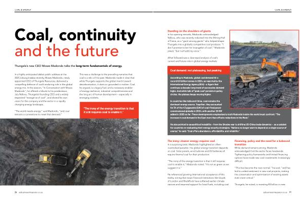 Thungela’ s new CEO Moses Madondo talks the long-term fundamentals of energy.