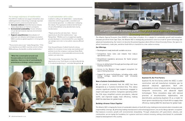 The Atlantis SEZ is shaping the future of sustainable industry in South Africa by creating an environment where innovation and responsibility converge. By attracting leading manufacturers and technology pioneers, we are building a dynamic ecosystem that balances economic growth with environmental stewardship. Through collaboration with government, industry, and communities, we are laying the foundation for a greener and more resilient economy, setting a benchmark for sustainable industrial development in the country.