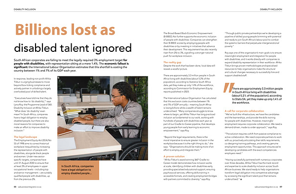 South African corporates are failing to meet the legally required 3 % employment target for people with disabilities, with representation sitting at a mere 1.4 %. The economic fallout is significant: the International Labour Organisation estimates that this shortfall is costing the country between 1 % and 7 % of its GDP each year.