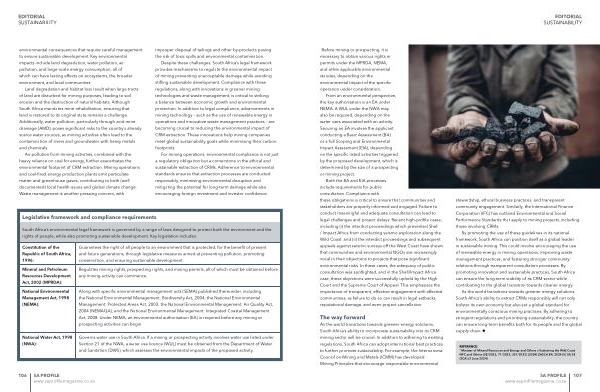 As the world transitions towards greener energy solutions, South Africa’ s ability to extract CRMs responsibly will not only bolster its own economy but also set a global standard for environmentally conscious mining practices. By adhering to stringent regulations and prioritising sustainability, the country can ensure long-term benefits both for its people and the global supply chain. ■