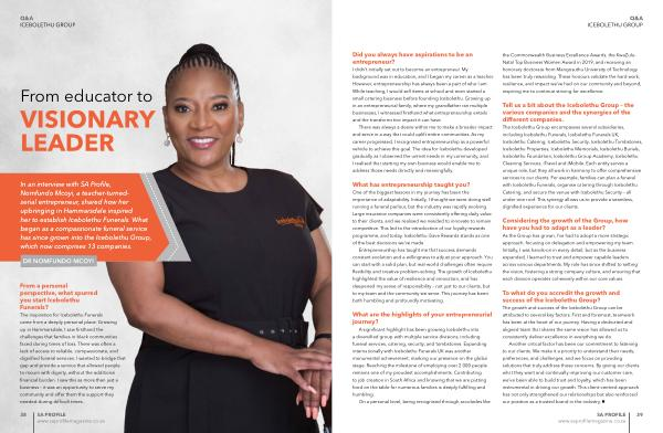 A significant highlight has been growing Icebolethu into a diversified group with multiple service divisions, including funeral services, catering, security, and tombstones. Expanding internationally with Icebolethu Funerals UK was another monumental achievement, marking our presence on the global stage. Reaching the milestone of employing over 2 000 people remains one of my proudest accomplishments. Contributing to job creation in South Africa and knowing that we are putting food on the table for numerous families is deeply fulfilling and humbling.
