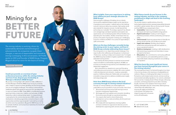 The mining industry is evolving, driven by sustainability demands and technological advancements. As companies navigate these changes, a new era of responsible and innovative mining is emerging. In this conversation, SA Profile spoke to CEO and Founder of MAB Group, Pinagare Mogodi about his vision for the future of mining.