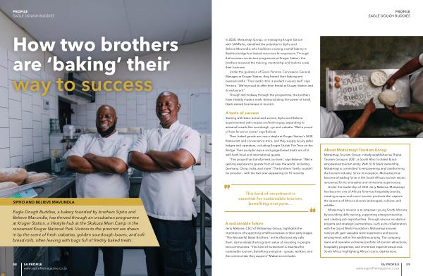 In 2020, Motsamayi Group, co-managing Kruger Station with SANParks, identified the potential in Sipho and Believe Mavundla, who had been running a small bakery in Bushbuckridge but lacked resources for expansion. Through the business incubation programme at Kruger Station, the brothers received the training, mentorship and tools to scale their business.