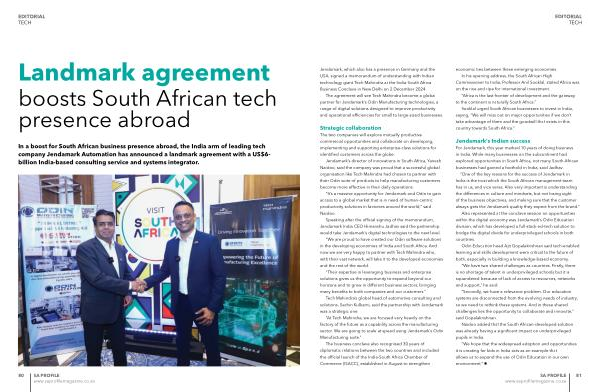 In a boost for South African business presence abroad, the India arm of leading tech company Jendamark Automation has announced a landmark agreement with a US $ 6- billion India-based consulting service and systems integrator.