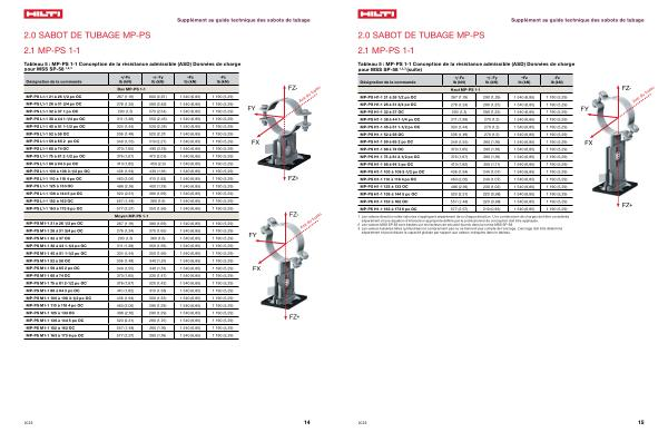 1 Les valeurs directionnelles tabulées s ’ appliquent séparément dans chaque direction . Une combinaison de charges doit être considérée séparément et une équation d ’ interaction appropriée définie par le professionnel de conception doit être appliquée . 2 Les valeurs MSS SP-58 sont basées sur les facteurs de sécurité fournis dans la norme MSS SP-58 . 3 Les valeurs tabulées telles qu ’ illustrées ne comprennent pas ou ne tiennent pas compte de l ’ ancrage . L ’ ancrage doit être déterminé séparément et peut réduire la capacité globale par rapport aux valeurs indiquées dans le tableau .