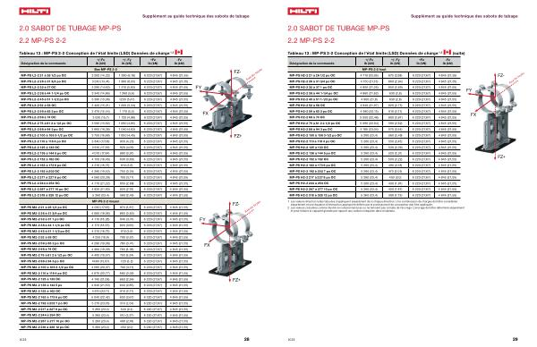 MP-PS L2-2 136 à 144 5 po OC 4 010 ( 17,84 ) 880 ( 3,91 ) 6 220 ( 27,67 ) 4 845 ( 21,55 ) |