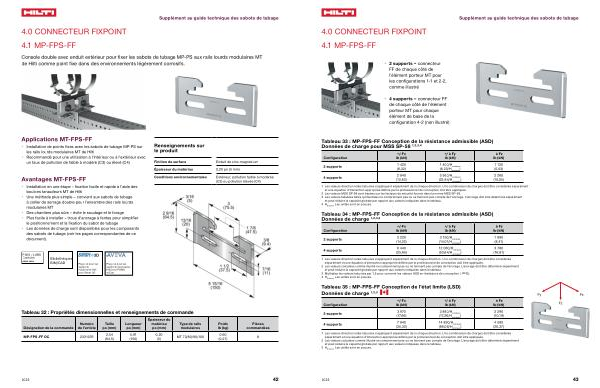 Tableau 33 : MP-FPS-FF Conception de la résistance admissible ( ASD ) Données de charge pour MSS SP-58 1 , 2 , 3 , 4