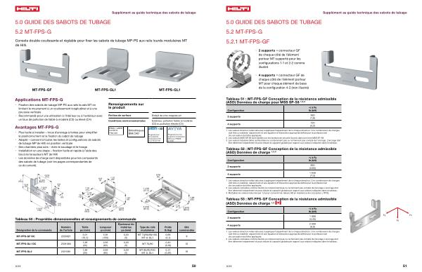 Tableau 51 : MT-FPS-GF Conception de la résistance admissible ( ASD ) Données de charge pour MSS SP-58 1 , 2 , 3 |