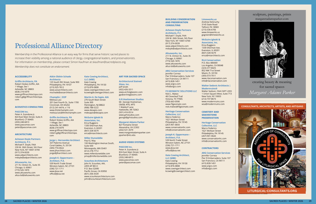 creating beauty & meaning for sacred spaces Margaret Adams Parker CONSULTANTS, ARCHITECTS, ARTISTS, AND ARTISANS
