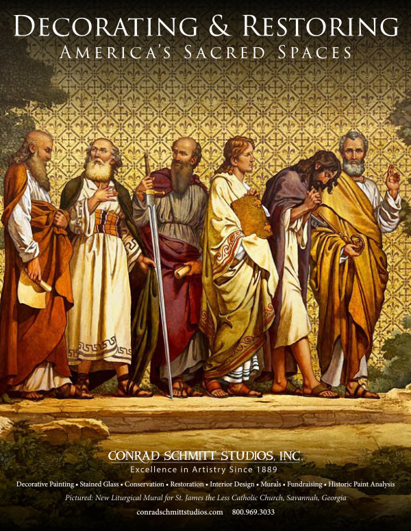 Decorative Painting • Stained Glass • Conservation • Restoration • Interior Design • Murals • Fundraising • Historic Paint Analysis Pictured: New Liturgical Mural for St. James the Less Catholic Church, Savannah, Georgia conradschmittstudios. com 800.969.3033