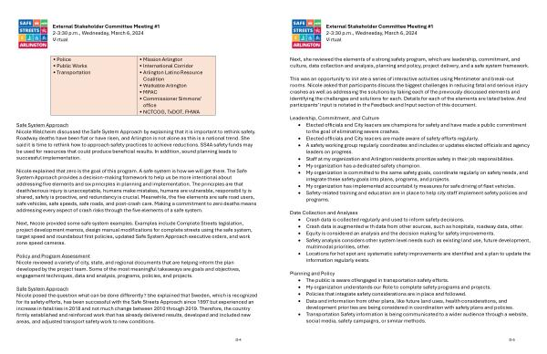 Safe System Approach Nicole Waldheim discussed the Safe System Approach by explaining that it is important to rethink safety . Roadway deaths have been flat or have risen , and Arlington is not alone as this is a national trend . She said it is time to rethink how to approach safety practices to achieve reductions . SS4A safety funds may be used for resources that could produce beneficial results . In addition , sound planning leads to successful implementation .