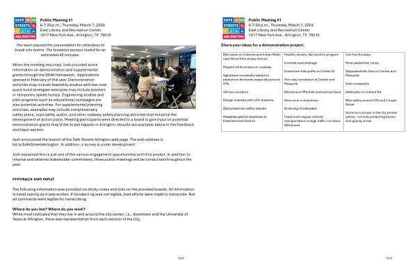 Public Meeting # 1 6-7:30 p . m ., Thursday , March 7 , 2024 East Library and Recreation Center 1817 New York Ave ., Arlington , TX 76010