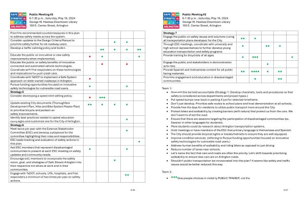 Update existing City documents ( Thoroughfare Development Plan , Hike and Bike System Master Plan ) to prioritize bicycle and pedestrian safety improvements . Identify best practices related to speed education campaigns and customize one for the City of Arlington . Strategy 6 Meet twice per year with the External Stakeholder Committee ( ESC ) and develop a playbook for the committee highlighting their roles and responsibilities . ESC leads tracking and evaluation of safety actions in this plan . Ask ESC members that represent disadvantaged communities to present at each ESC meeting on safety updates and community needs . Encourage ESC members to incorporate the safety vision , goal , and strategies of Safe Streets Arlington into their respective initiatives at work and in their communities . Engage with TxDOT , schools , UTA , hospitals , and first responders a minimum of two times per year on safety actions .