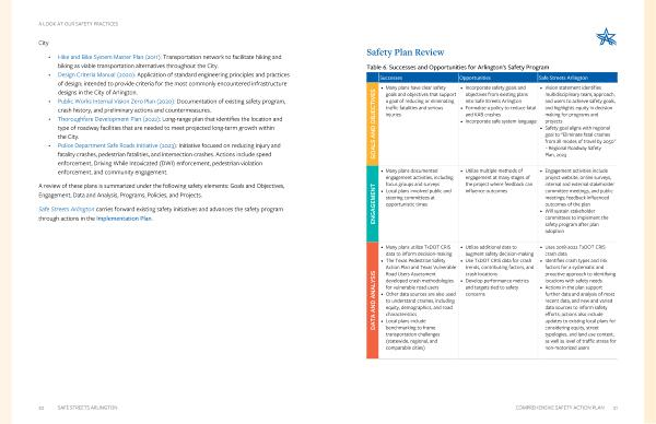 Table 6 . Successes and Opportunities for Arlington ' s Safety Program