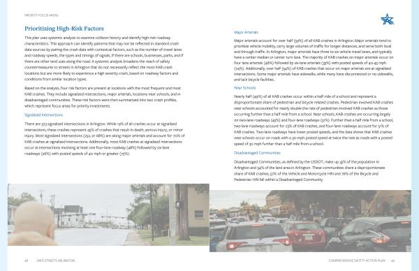 Disadvantaged Communities , as defined by the US DOT , make up 35 % of the population in Arlington and 34 % of the land area in Arlington . These communities share a disproportionate share of KAB crashes ; 57 % of the Vehicle and Motorcycle HIN and 76 % of the Bicycle and Pedestrian HIN fall within a Disadvantaged Community .