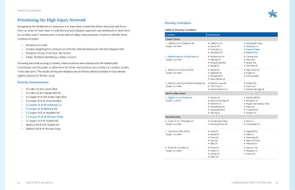 20 corridors and 11 intersections in most need of safety improvements . Criteria to identify these locations included :