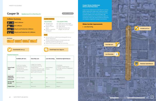 CooRe ~ St from Nedderman D ~ to Park Row Dr is a six-lane roadway with a raised cente ~ median and a SJ ) eed ifhe corrido ~ runs between the University