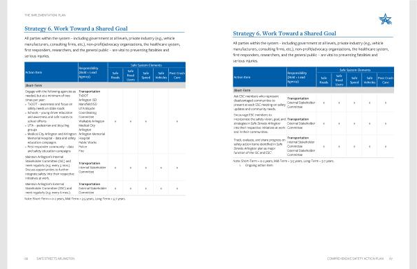 Encourage ESC members to incorporate the safety vision , goal , and Transportation strategies in Safe Streets Arlington External Stakeholder X X X X X