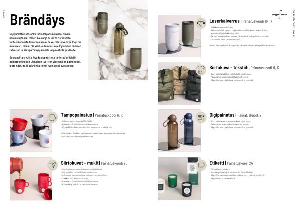 Seuraavilta sivuilta löydät inspiraatiota ja tietoa erilaisiin painotekniikoihin. Jokaisen tuotteen vieressä on painokoodi, josta näet, mikä tekniikka toimii kyseisessä tuotteessa.