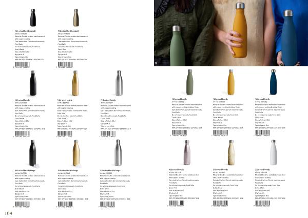 Nils steel bottle Art . No : 5018218 Material : Double-walled stainless steel with copper coating Care instruction : Do not machine wash , Food Safe Do not machine wash , Food Safe Color : White Size : ø7x26cm 50cl Qty / pack : 6 Type of pack : Box RRP : 279 SEK / 299 NOK / 229 DKK / 32 €