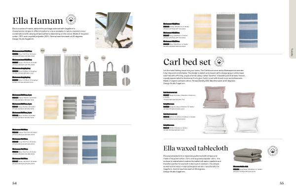 Ella is a series of towels, tablecloths and bags adorned with Sagaform’ s characteristic stripes in different patterns. Ella is available in nature-inspired colour combinations with varying striped patterns depending on the colour. Made of recycled cotton( 70 %) and recycled polyester( 30 %). Normal machine wash at 40 degrees. Design Studio Sagaform.