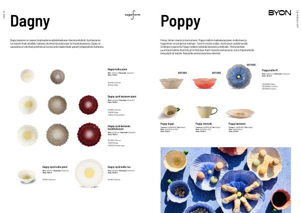 Dagny lautanen on saanut inspiraationsa päivänkakkaran ihanista lehdistä. Syvä lautanen tuo kauniin lisän pöydälle, kaikessa yksinkertaisuudessaan tai tarjoilulautasena. Dagny on saatavana eri väreissä ja kolmessa koossa jotka täydentävät upeasti jokapäiväistä kattausta