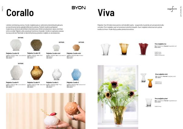 Leikkisä, viettelevä ja pramea. Corallo-maljakkosarja on valmistettu käsintehdystä paksusta ja massiivisesta lasista epäsäännöllisissä muodoissa. Pyöreät muodot ja pohjasävyt moderneissa väreissä sekä kiiltävä viimeistely luovat tämän ainutlaatuisen sarjan, jota ilman emme voi elää. Maljakot, jotka varastavat huomion jo itsessään. Corallo on saatavana useassa koossa ja värissä. Materiaali on käsintehtyä lasia ja jokainen maljakko on ainutlaatuinen.