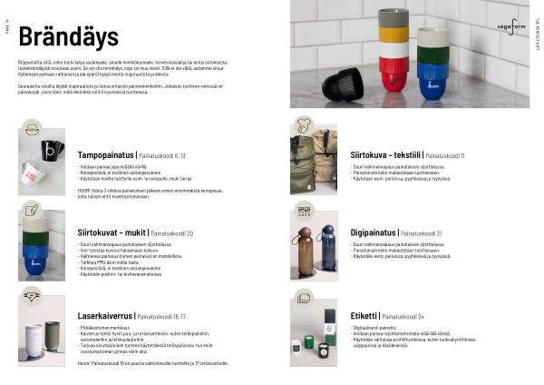 Seuraavilta sivuilta löydät inspiraatiota ja tietoa erilaisiin painotekniikoihin. Jokaisen tuotteen vieressä on painokoodi, josta näet, mikä tekniikka toimii kyseisessä tuotteessa.