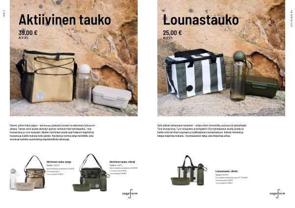 Päiviin, jolloin liikut paljon – luonnossa, paikasta toiseen tai aktiivisen työvuoron aikana. Tämän setin avulla selviydyt arjesta: kestävä Vide-kylmälaukku, Tinalounasrasia ja Ture-vesipullo. Näiden tuotteiden avulla saat helposti kuljetettua lounasta ja eväitä mukana koko päivän. Kestävä ja toimiva lahja henkilölle, joka arvostaa huolella suunniteltuja käytännöllisiä ratkaisuja.