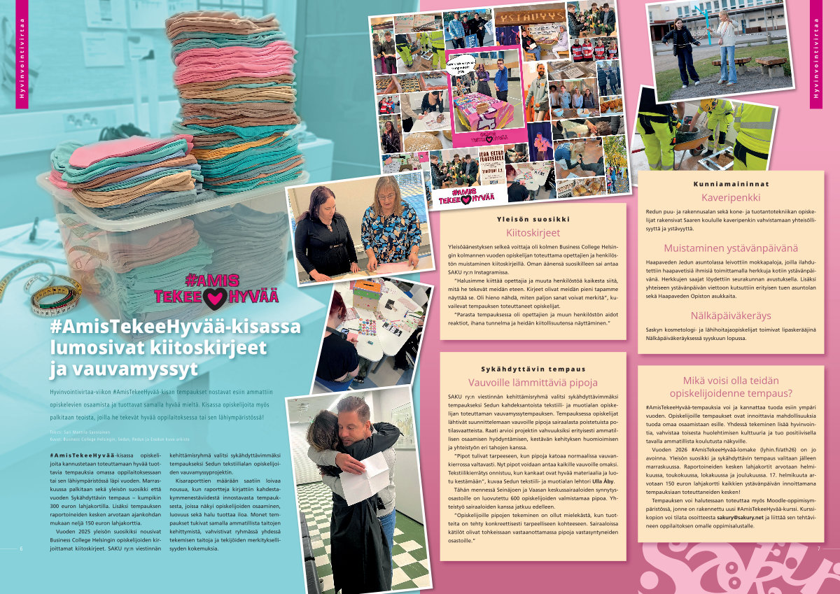 Vuoden 2025 yleisön suosikiksi nousivat Business College Helsingin opiskelijoiden kirjoittamat kiitoskirjeet. SAKU ry: n viestinnän kehittämisryhmä valitsi sykähdyttävimmäksi tempaukseksi Sedun tekstiilialan opiskelijoiden vauvamyssyprojektin.