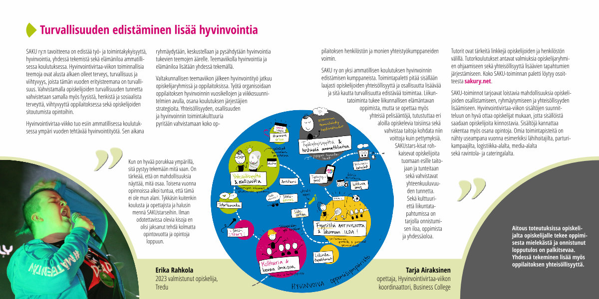 SAKU ry: n tavoitteena on edistää työ- ja toimintakykyisyyttä, hyvinvointia, yhdessä tekemistä sekä elämäniloa ammatillisessa koulutuksessa. Hyvinvointivirtaa-viikon toiminnallisia teemoja ovat alusta alkaen olleet terveys, turvallisuus ja viihtyvyys, joista tämän vuoden erityisteemana on turvallisuus. Vahvistamalla opiskelijoiden turvallisuuden tunnetta vahvistetaan samalla myös fyysistä, henkistä ja sosiaalista terveyttä, viihtyvyyttä oppilaitoksessa sekä opiskelijoiden sitoutumista opintoihin.