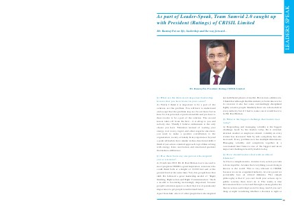 As part of Leader-Speak, Team Samvid 2.0 caught up with President( Ratings) of CRISIL Limited