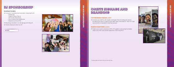 � Increase your visibility with double-sided signs that are strategically placed throughout the show. Located in high-traffic areas, these large 19” wide x 87” high signs provide unsurpassed marketing exposure.