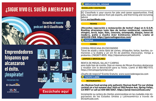 Incremente su cartera de clientes anúnciandose en las ciudades más importantes de los Estados Unidos y Latinoamérica a través de ElClasificado . com .