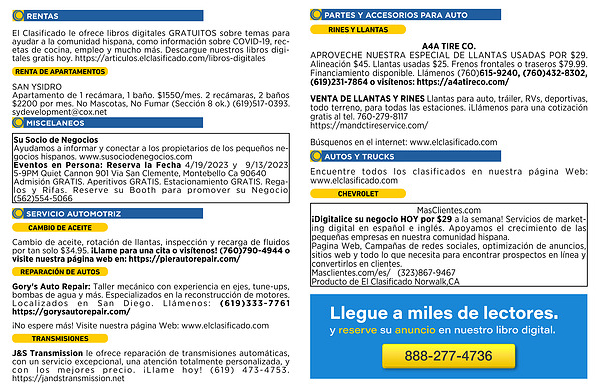 MasClientes . com ¡ Digitalice su negocio HOY por $ 29 a la semana ! Servicios de marketing digital en español e inglés . Apoyamos el crecimiento de las pequeñas empresas en nuestra comunidad hispana . Pagina Web , Campañas de redes sociales , optimización de anuncios , sitios web y todo lo que necesita para encontrar prospectos en línea y convertirlos en clientes . Masclientes . com / es / ( 323 ) 867-9467 Producto de El Clasificado Norwalk , CA