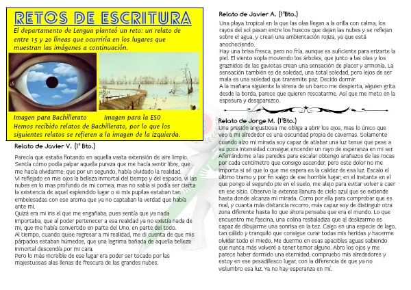 Una presión angustiosa me obliga a abrir los ojos, mas lo único que veo a mi alrededor es una oscuridad propia de cavernas. Solamente cuando alzo mi mirada soy capaz de atisbar una luz tenue que pese a su poca intensidad consigue encender un rayo de esperanza en mi ser. Aferrándome a las paredes para escalar obtengo arañazos de las rocas por cada centímetro que consigo ascender, pero este dolor no me importa si sé que lo que me espera es la calidez de esa luz. Escalo el último tramo y por fin salgo de ese horrible lugar; en el instante en el que pongo el segundo pie en el suelo, me alejo para evitar volver a caer en ese sitio. Observo la extensa llanura de cielo azul que se extiende hasta donde alcanza mi mirada. Corro por ella para comprobar que es real, y cuanta más distancia recorro, más capaz soy de distinguir otra zona diferente hasta lio que ahora pensaba que era el mundo. Lo que encuentro me fascina, una colina resbaladiza que al deslizarme es capaz de dibujarme una sonrisa en la tez. Caigo en una especie de lago, tan cálido y tranquilo que consigue curar todas mis heridas y hacerme olvidar todo el miedo. Me duermo en esas apacibles aguas sabiendo que nunca más volveré a tener temor alguno. Abro los ojos y me parece haber dormido una eternidad; compruebo mis alrededores y estoy en ese pesadillesco lugar, con la diferencia de que ya no vislumbro esa luz. Ya no hay esperanza en mí.