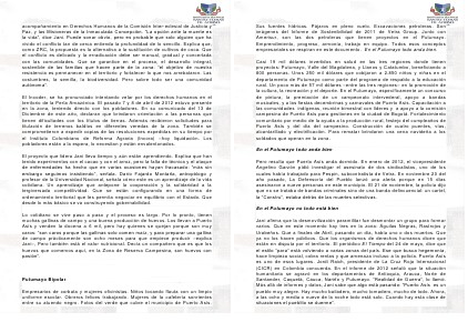 acompañamiento en Derechos Humanos de la Comisión Inter-eclesial de Justicia y Paz, y las Misioneras de la Inmaculada Concepción. ?La opción ante la muerte es la vida?, dice Jani. Puede sonar obvio, pero es probable que solo alguien que ha vivido el conflicto tan de cerca entienda la profundidad de lo sencillo. Explica que, como ZRC, la propuesta es la alternativa a la sustitución de cultivos de coca. Que el conflicto es delicado y la erradicación debe ser manual, gradual y concertada con las comunidades. Que se garantice en el proceso, el desarrollo integral, sostenible de las familias que hacen parte de la zona: ?el objetivo de nuestra resistencia es permanecer en el territorio y fortalecer lo que nos arrebataron. Las costumbres, la semilla, la biodiversidad. Pero sobre todo ser una comunidad autónoma?. El Incoder, se ha pronunciado intentando velar por los derechos humanos en el territorio de la Perla Amazónica. El pasado 7 y 8 de abril de 2012 estuvo presente en la zona, teniendo directo con los pobladores. En su comunicado del 13 de Diciembre de este año, declaran que brindaron orientación a las personas que tienen dificultades con los títulos de tierras. Además recibieron solicitudes para titulación de terrenos baldíos en diferentes veredas de la zona. También se comprometieron a expedir copias de las resoluciones expedidas en su tiempo por el Instituto Colombiano de Reforma Agraria (Incora) –hoy liquidación. Los pobladores están a la espera, lo necesitan y están envalentonados. El proyecto que lidera Jani lleva tiempo y aún están apr endiendo. Explica que han tenido experimentos con el cacao y con el arroz, pero la falta de técnica y el ataque de enfermedades ha hecho que en varias ocasiones hayan fracasado: ?más sin embargo seguimos insistiendo?, señala. Darío Fajardo Montaña, antropólogo y profesor de la Universidad Nacional, señala cómo este es un aprendizaje de la vida cotidiana. Un aprendizaje que antepone la cooperación y la solidaridad a la tergiversada competitividad. Que se están configurando en una forma de ordenamiento territorial que les permita negociar en equilibrio con el Estado. Que desde lo más básico se va construyendo gobernabilidad. Lo cotidiano se vive paso a paso y el proceso es largo. Por lo pronto, tienen muchas gallinas de campo y una buena producción de huevos. Los llevan a Puerto Asís y venden la docena a 6 mil, pero hay quienes se quejan porque son muy caros: ?son caros porque las gallinas solo comen maíz, y para preparar una gallina de campo prácticamente son ocho meses para que empiece producir –explica Jani–, Pero también está el valor nutricional. Decía un compañero que es que los huevos que comemos aquí, en la Zona de Reserva Campesina, son huevos con pasión?.