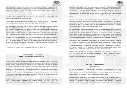 llamamos ?indignados?. Pero si lo hacen los labriegos o los pequeños empresarios agrícolas colombianos (que sostienen a 9 millones de personas), se convierten en ?subversivos?. Para ellos están reservados el despojo sin derecho a queja, el desplazamiento en silencio, la resignación secular... O, en el extremo de la desesperación, la errada vía de las armas. Celebremos que –descontados desmanes condenables– esta vez nuestros cultivadores se rebelen y se hagan sentir. ¿Y cómo no rebelarse ante el estado del campo colombiano, agobiado por la violencia, el despojo, la injusticia, el abandono? Según reciente estudio (Balcázar y Rodríguez), ?los índices de concentración de la tierra en Colombia son de los más elevados del mundo?: el 70 por ciento de los predios son dueños del 6 por ciento de la tierra y solo el 1 por ciento tiene el 43 por ciento. Es vergonzosa la historia de algunos programas oficiales de fomento agrícola de los últimos años. El de Carimagua, que debía destinar 17.000 hectáreas a campesinos desplazados, terminó en manos de Corpoíca, Incoder y el Ejército. Buena parte del botín en subsidios del plan Agro Ingreso Seguro fue al bolsillo de plutócratas costeños y amigos políticos del pasado gobierno. El reciente plan de titulación de baldíos en el Catatumbo cayó en poder de poderosas empresas. Dos de cada tres trabajadores ganan menos de un salario mínimo. Buena parte de los créditos se destinan a los más adinerados. Según el economista Aurelio Suárez, los fertilizantes de venta en Colombia figuran entre los más caros del planeta. La mitad de las calorías y proteínas de cereal que consume el país vienen del exterior. En el primer año del TLC se dispararon las importaciones agrícolas: la soya subió 467 por ciento, los lácteos, 214, la carne de cerdo, 66, el trigo, 15… Fedesarrollo señala que en los últimos años bajó la pobreza en el país, salvo en el área rural, donde aumentó la indigencia y pe '6?7FRV?f?&??&??FR??6W&???"W6?&?FW7F???26?W6???2?6?W7FVBgVW&6?W6????6VwW&?V?FRF?&?:??W7F,:?w&?F?F?V?V?6'&WFW&????Dd$?$t??g&VF??????T?E$RD?$??D??d?D4??4??&f???F?V??'FW2FW6FR6ƒ?6???:??V?6'&WFW&VRFW7\:?2FR6"??2'W'&?F?&W27V?F?f?2FR6;FR?;?6"FV?f??R6RgVV?fR??FW&W6?FR?&V??V??????FV??FRFR?V?F?;2V?6?W&?w&?L;3?( \*?:?f?V?V?( b?6???6???2W7GWf?W&W7W&?F???'W6WFg&V?;2FWG,:2FRV?'W2VR?,:?g&V?F?FWG,:2FRV?6?;6???,:??"?fV?F?????f?VRFR?2???2VRF???66?FV?FR&?&?6?F?F?6W&626?V?F?2FR6?W6???2?Vw&?2?w&?F&??v?F&??&v?2v'&?FW3?????,:?6&v&?WV\;?2??'&?W2????,:?6?F?FR?6??'&??7V?F?f?VRFV????