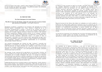 le interesa en este momento es seguir en el poder, recostado sobre esta nación, por completo indiferente al porvenir de sus habitantes. El respaldo a los campesinos se tiene que demostrar con una negativa enfática a consumir y comprar productos alimenticios importados; con una decidida actitud para cuestionar las informaciones sesgadas de grandes canales noticiosos como Caracol o RCN; rechazando cualquier propuesta procedente de partidos políticos cercanos a los creadores de la crisis agrícola: La U, los Liberales, los Conservadores y demás expresiones cercanas al gobierno Santos, así como la supuesta oposición del señor Uribe Vélez y su Centro Democrático, pues han demostrado convicción solo hacia sus propios estómagos y negocios. Nos urge un cambio de hábitos vitales, educativos y de acción colectiva.