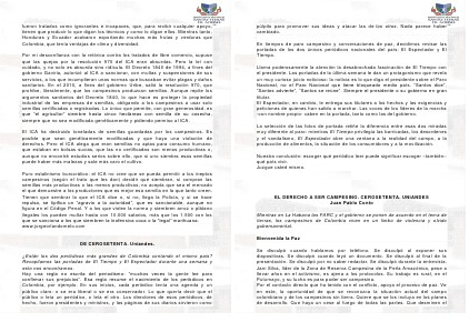 EL DERECHO A SER CAMPESINO. CEROSETENTA. UNIANDES Juan Pablo Conto Mientras en La Habana las FARC y el gobierno se ponen de acuerdo en el tema de