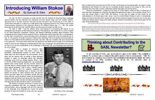 publications, Bill Stokoe not only had an incredibly positive impact on the study of ASL, but his