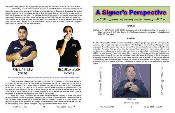 that the bilingualism associated with LSM and ASL will continue to thrive in El Paso, Texas. I am