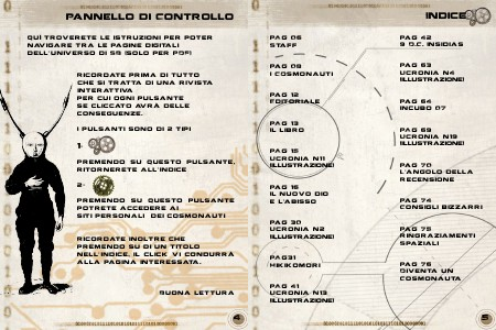Pannello di Controllo Quì troverete le istruzioni per poter na vigare tra le pagine digit ali dell’ universo di SB (solo per PDF) Ricorda te prima di tutto che si tra a di una rivist tt a intera ttiv a per cui ogni pulsante se clicca to a vrà delle conseguenze. I pulsanti sono di 2 tipi 1Premendo su questo pulsante, ritornerete all’ Indice 2Premendo su questo pulsante potrete accedere ai siti personali dei cosmonauti Ricorda te inoltre che premendo su di un titolo nell’ Indice, il click vi condurrà alla pagina interessa a. t Buona lettura 4