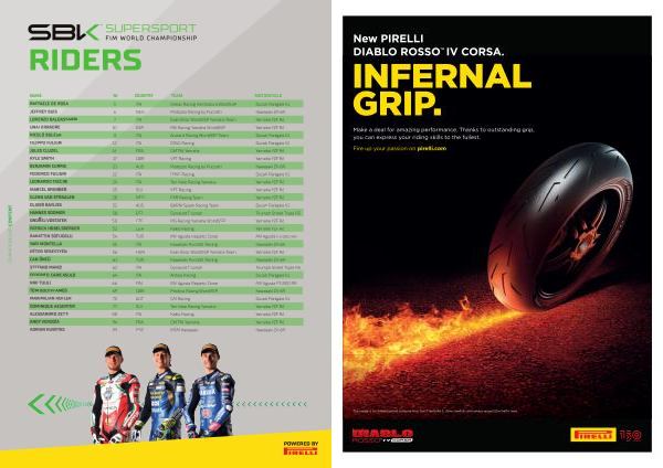 RIDERS NAME Nº COUNTRY TEAM MOTORCYCLE 3 6 7 10 11 12 16 17 21 22 24 25 28 32 38 50 52 54 55 56 61 62 64 66 69 73 77 88 94 99 ITA NED ITA ESP ITA ITA FRA GBR AUS ITA ITA SUI NED AUS EST CZE GER TUR ITA HUN TUR ITA ITA FIN GBR AUT SUI ITA FRA ESP Orelac Racing Verdnatura WorldSSP Motozoo Racing by Puccetti Evan Bros . WorldSSP Yamaha Team MS Racing Yamaha WorldSSP Aruba . it Racing WorldSSP Team D34G Racing GMT94 Yamaha VFT Racing Motozoo Racing by Puccetti D34G Racing Ten Kate Racing Yamaha VFT Racing EAB Racing Team BARNI Spark Racing Team Dynavolt Triumph MS Racing Yamaha WorldSSP Kallio Racing MV Agusta Reparto Corse Kawasaki Puccetti Racing Evan Bros . WorldSSP Yamaha Team Kawasaki Puccetti Racing Dynavolt Triumph Althea Racing MV Agusta Reparto Corse Prodina Racing WorldSSP CM Racing Ten Kate Racing Yamaha Kallio Racing GMT94 Yamaha MTM Kawasaki Ducati Panigale V2 Kawasaki ZX-6R Yamaha YZF R6 Yamaha YZF R6 Ducati Panigale V2 Ducati Panigale V2 Yamaha YZF R6 Yamaha YZF R6 Kawasaki ZX-6R Ducati Panigale V2 Yamaha YZF R6 Yamaha YZF R6 Yamaha YZF R6 Ducati Panigale V2 Triumph Street Triple RS Yamaha YZF R6 Yamaha YZF R6 MV Agusta F3 800 RR Kawasaki ZX-6R Yamaha YZF R6 Kawasaki ZX-6R Triumph Street Triple RS Ducati Panigale V2 MV Agusta F3 800 RR Kawasaki ZX-6R Ducati Panigale V2 Yamaha YZF R6 Yamaha YZF R6 Yamaha YZF R6 Kawasaki ZX-6R CHAMPIONSHIP CONTENT RAFFAELE DE ROSA JEFFREY BUIS LORENZO BALDASSARRI UNAI ORRADRE NICOLÒ BULEGA FILIPPO FULIGNI JULES CLUZEL KYLE SMITH BENJAMIN CURRIE FEDERICO FULIGNI LEONARDO TACCINI MARCEL BRENNER GLENN VAN STRAALEN OLIVER BAYLISS HANNES SOOMER ONDREJ VOSTATEK PATRICK HOBELSBERGER BAHATTIN SOFUOGLU YARI MONTELLA PÉTER SEBESTYÉN CAN ÖNCÜ STEFANO MANZI FEDERICO CARICASULO NIKI TUULI TOM BOOTH-AMOS MAXIMILIAN KOFLER DOMINIQUE AEGERTER ALESSANDRO ZETTI ANDY VERDOÏA ADRIAN HUERTAS POWERED BY