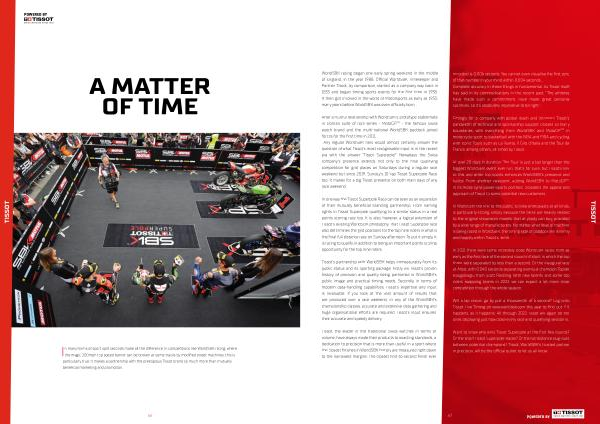 After a fruitful relationship with WorldSBK ’ s prototype stablemate in Dorna ’ s suite of race series - MotoGP TM - the famous Swiss watch brand and the multi-national WorldSBK paddock joined forces for the first time in 2011 . Any regular WorldSBK fans would almost certainly answer the question of what Tissot ’ s most recognisable input is in the recent era with the answer “ Tissot Superpole !” Nowadays the Swiss company ’ s presence extends not only to the final qualifying competition for grid places on Saturdays during a regular race weekend but since 2019 , Sunday ’ s 10-lap Tissot Superpole Race too . It makes for a big Tissot presence on both main days of any race weekend .