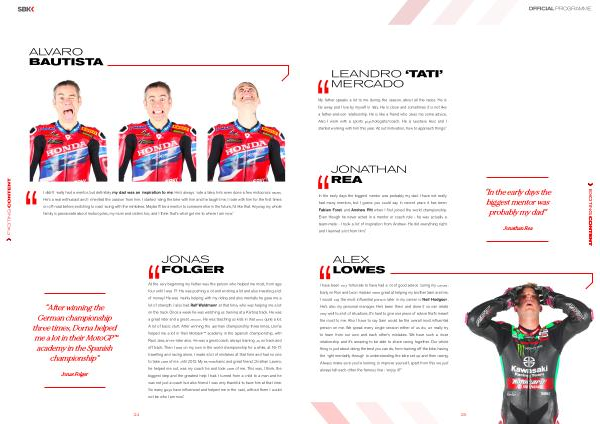 I have been very fortunate to have had a lot of good advice during my career . Early on Ron and Leon Haslam were great at helping my brother Sam and me . I would say the most influential person later in my career is Neil Hodgson . He ’ s also my personal manager . He ’ s been there and done it so can relate very well to a lot of situations . It ’ s hard to give one piece of advice that ’ s meant the most to me . Also I have to say Sam would be the overall most influential person on me . We speak every single session either of us do , we really try to learn from our own and each other ’ s mistakes . We have such a close relationship and it ’ s amazing to be able to share racing together . Our whole thing is just about doing the best you can do , from training off the bike , having the right mentality through to understanding the bike set up and then racing . Always make sure you ’ re looking to improve yourself , apart from this we just always tell each other the famous line - ‘ enjoy it !’”