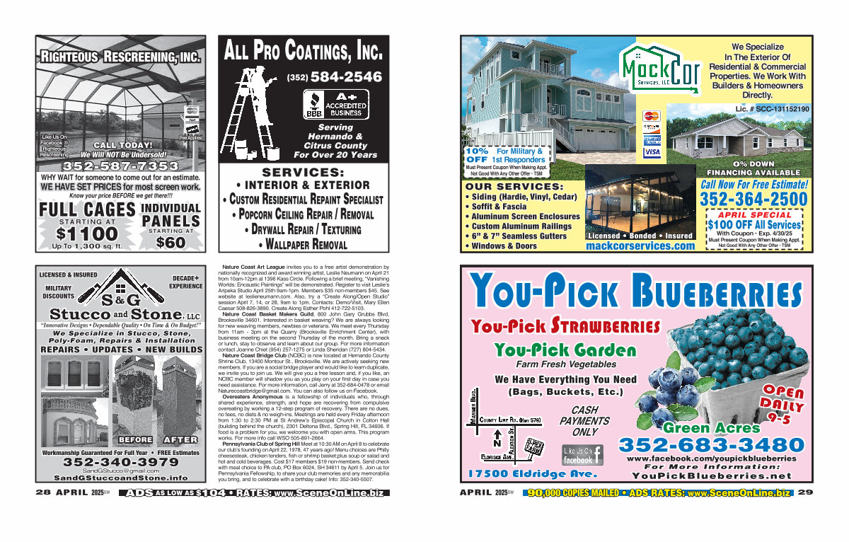 28 APRIL 2025 SW ADS AS LOW AS $ 104 • RATES: www. SceneOnLine. biz