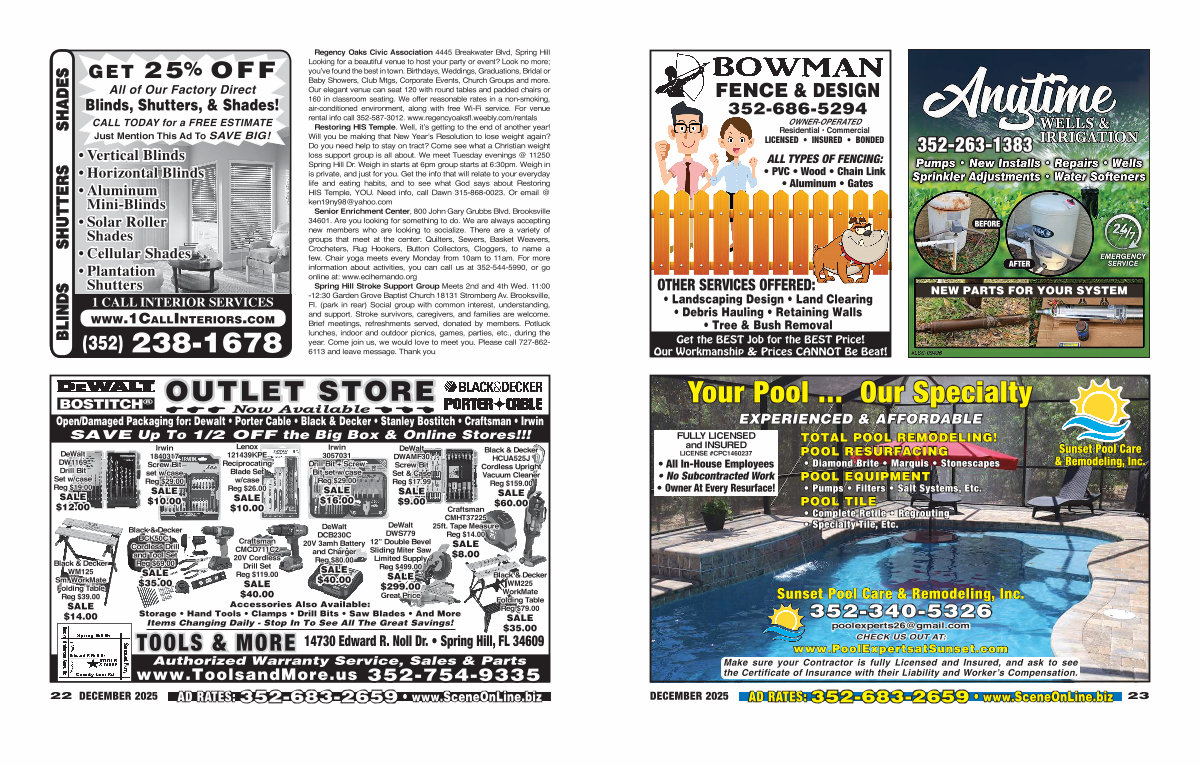 AD RATES: 352-683-2659 • www. SceneOnLine. biz