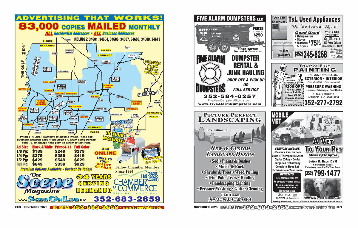 AD RATES: 352-683-2659 • www. SceneOnLine. biz